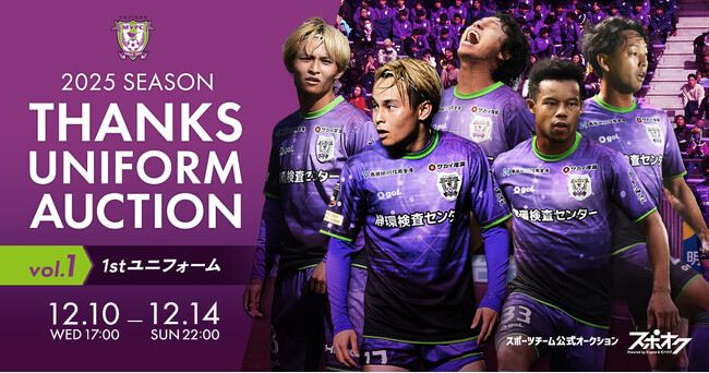 株式会社モバオク(本社:東京都渋谷区、代表取締役社長:小一原 宏樹、以下モバオク)がエンゲート株式会社(本社:東京都中央区、代表取締役:城戸 幸一郎、以下エンゲート)と業務提携し提供するスポーツチーム公式オークションサービス「スポオク」にて、J.LEAGUE所属の藤枝MYFCは『藤枝MYFC 2025 SEASON THANKS UNIFORM AUCTION Vol.1』を2025年12月10日(水)から開始します。