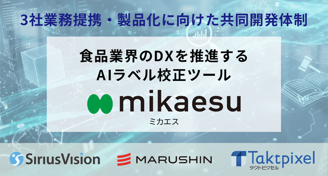 【3社業務提携】シリウスビジョン、丸信、タクトピクセル 食品業界のDXを推進するAIラベル校正ツール「mikaesu(ミカエス)」の製品化に向けた共同開発体制を強化