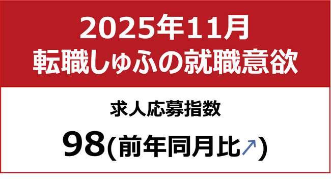 【しゅふの就職意欲調査 2025年11月】しゅふ求人の応募指数98(前月比-2)