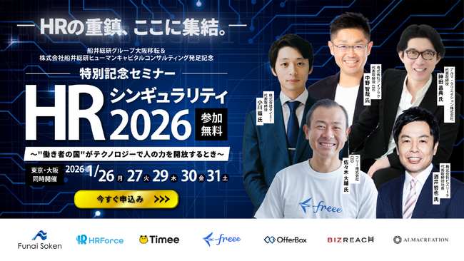 株式会社HR Force(本社:東京都中央区、代表取締役:村田泰子/2026年1月1日より株式会社船井総研ヒューマンキャピタルコンサルティングへ社名変更)は、経営者および人事責任者を対象に、これからの日本型経営のあり方を問う特別イベント「HRシンギュラリティ2026」を開催いたします。