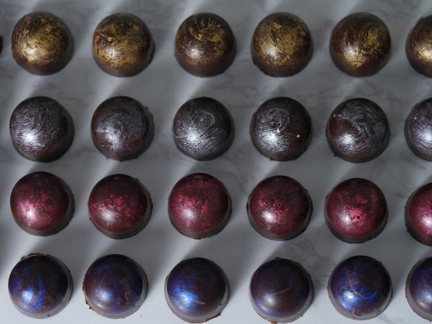 テンパリングした薄いチョコでコーティング。パリッとした食感。口の中でお酒がほどよく弾けるよう、チョコレートの厚みや温度、包み方の細部にまでこだわりました。