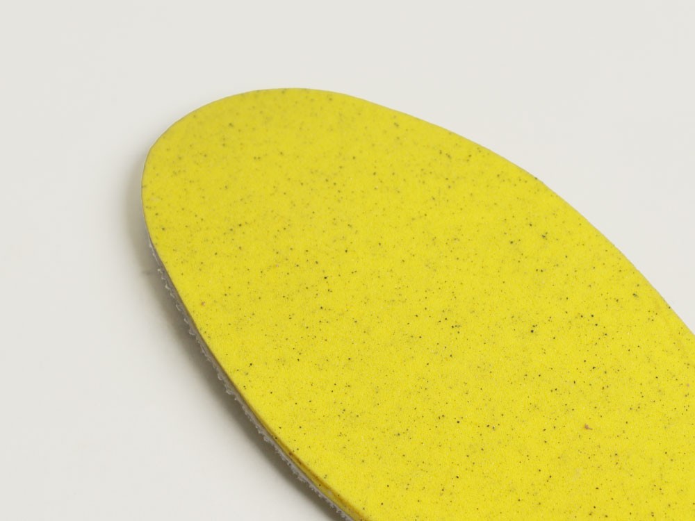 つま先部分の硬度を上げ、耐久性を高めるとともに、ソール全体は柔らかめに設定して屈曲性と防滑性を向上。同時に、この2層構造が高いクッション性も実現しています。