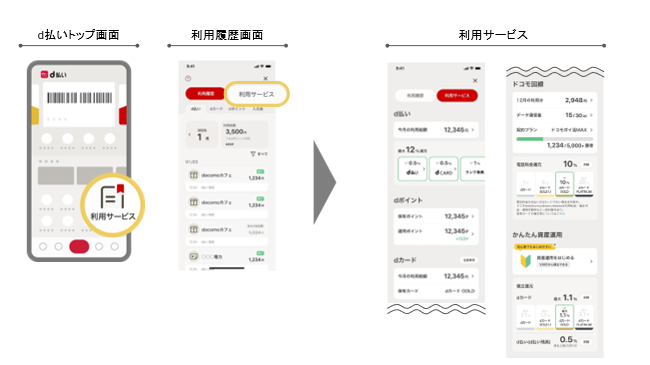 本機能により、お客さまは複数のアプリを行き来することなく、「d払い」アプリ一つで契約中のドコモが提供する複数サービスの利用状況を簡単に把握することが可能です。