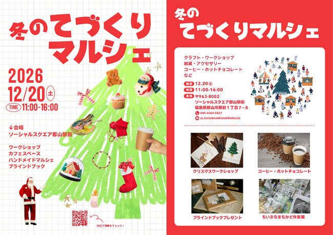 ソーシャルスクエア郡山駅前店(運営:NPO法人ソーシャルデザインワークス 代表理事:北山剛)にて、2025年12月20日(土)に、冬のてづくりマルシェを開催します。