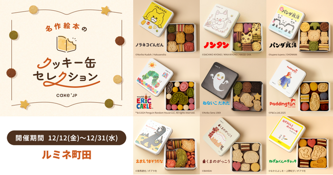 ケーキ・スイーツ専門通販サイト「Cake.jp(ケーキジェーピー)」を運営する株式会社Cake.jp(本社:東京都新宿区、代表取締役:高橋 優貴)は、12月12日(金)から12月31日(水)の20日間、JR町田駅改札前・ルミネ町田 2F コンコース区画にてCake.jpと大人気の絵本がコラボしたオリジナルクッキー缶を購入いただけるポップアップストア「名作絵本のクッキー缶セレクション by Cake.jp」を期間限定で出店します。