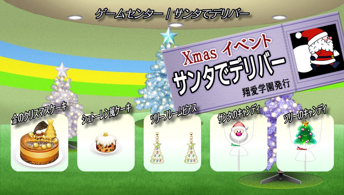 翔栄町内ショッピングモールにある「ゲームセンター」にて、クリスマス限定のミニゲーム「サンタでデリバー」が登場します。