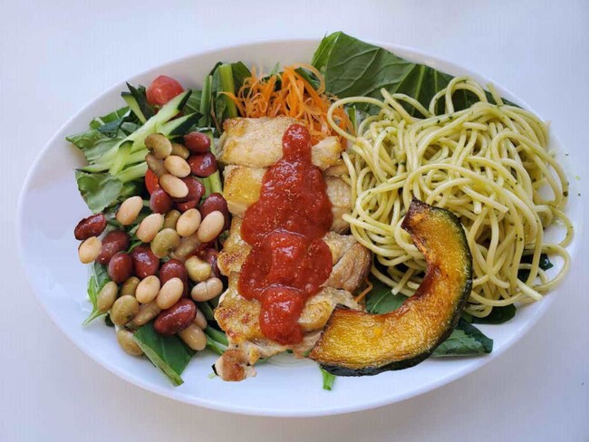 - ボリューム満点!ジェノベーゼパスタと人気のミックスビーンズ