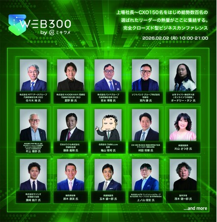 国内最大級のAIコミュニティ「WEB300」(主催:株式会社AI sword)は、各業界の経営層や第一人者、政界のリーダー300名が一堂に会する、完全クローズド型のビジネスカンファレンス「WEB300 Conference」SUPPORTED BY ミキワメ