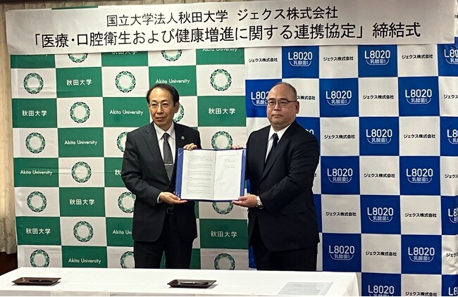 ジェクス株式会社(本社:大阪市中央区谷町、代表取締役社長:梶川 裕次郎、以下ジェクス)は、秋田大学(学長:南谷 佳弘)と、医療・口腔衛生および健康増進に関し包括的連携協力を目的とした連携協定を2025年12月15日に締結いたしました。
