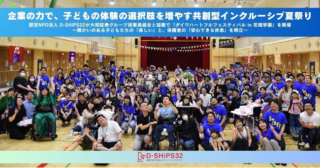 認定NPO法人 D-SHiPS32(所在地:長野県北佐久郡、理事長:上原 大祐、以下「ディーシップスミニ」)は、2025年7月26日、東京都立花畑学園(東京都足立区、以下「同学園」)と大和証券グループ従業員組合(以下「同組合」)と協働で、特別支援学級の児童・保護者を対象とした「ダイワハートフルフェスティバル in 花畑学園」を実施しました。