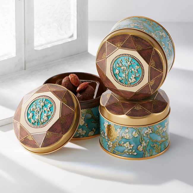 愛知県美術館『ゴッホ展 家族がつないだ画家の夢』会場限定『アーモンド缶』新発売。名画『花咲くアーモンドの木の枝』をテーマにした宝石箱のようなお菓子缶