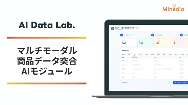 株式会社マインディア(本社:東京都港区、代表取締役CEO:鈴木 大也、以下「マインディア」)のAI Data Lab.は、商品名等のテキスト情報や、マルチモーダルAIによって認識した商品画像に基づき、対象商品を正確に判別した上で正しい属性データを自動で付与・連携するAIのモジュール(以下「AIモジュール」)を開発いたしました。