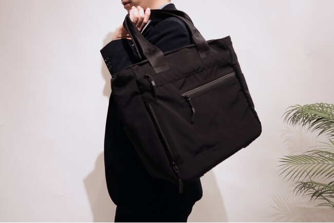 昨今、タイパ(タイムパフォーマンス)という意識が浸透してきており「効率よく時間を使いたい」という考え方から、仕事終わりにそのままジムに向かうことや、短期旅行へ出かけるなど、ビジネスパーソンの活動が多様化してきました。そのような背景もあり、ビジネスアイテムにおいて「オンオフで分けたくない」「さまざまなシーンで使いまわしをしたい」など、1つのアイテムに複数の用途を望む声が増えています。そこで今回、普段のビジネスシーンでの使用はもちろん、ジム用バッグ、さらには出張や旅行用などあらゆるシーンで活躍するマルチパーパストートバッグを企画しました。