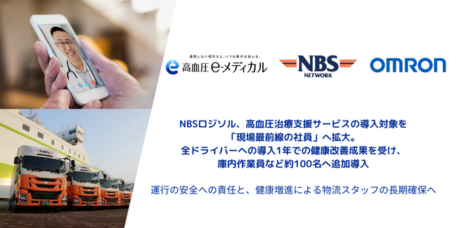 イーメディカルジャパン株式会社(本社:東京都千代田区、代表取締役社長:塩谷さおり、以下イーメディカルジャパン)、株式会社NBSロジソル(本社:大分県日田市、代表取締役社長:河野 逸郎、以下NBSロジソル)、オムロン ヘルスケア株式会社(本社:京都府向日市、代表取締役社長:岡田 歩、以下オムロン ヘルスケア)の3社は、NBSロジソルが昨年より全ドライバー約500名を対象に福利厚生として導入したオンライン診療サービス「高血圧イーメディカル」を活用したオンライン診療サービスを、ドライバー以外の社員(庫内作業員・事務職等)約100名に拡大し、2025年12月より順次導入を開始することをお知らせいたします。