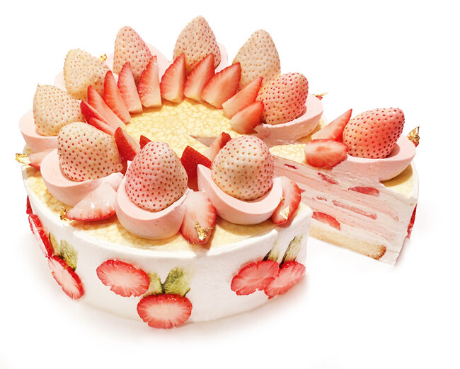 とても希少な白いちごを使用し、赤いいちご、ストロベリークリームと合わせて飾り付けました。芳醇な香りで甘い白いちごをご堪能いただけるミルクレープです。