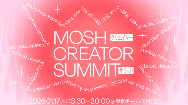 クリエイターが自身の価値を事業として確立し、継続的に発展させる未来を描く「MOSH CREATOR SUMMIT」を、MOSH株式会社(代表取締役社長:籔 和弥)は2026年1月17日(土)に開催します。