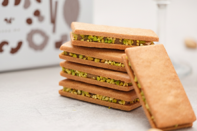 原材料:きび糖、生クリーム、小麦粉、バター、ピスタチオ、卵、アーモンドプードル、水あめ、食塩