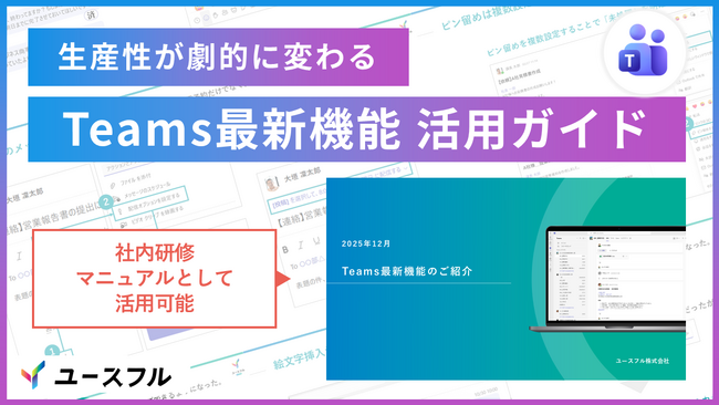 「創る人をつくる」をミッションに、Microsoft 365×生成AIの法人研修サービスを提供するユースフル株式会社(本社:東京都千代田区、代表取締役:大垣 凛太郎)は、数あるMicrosoft Teamsのアップデートの中から、実務での「即効性」に特化した便利機能をまとめたホワイトペーパー『Teams最新機能ガイド 2025年12月版』を、本日より公式サイトにて無料公開いたしました。