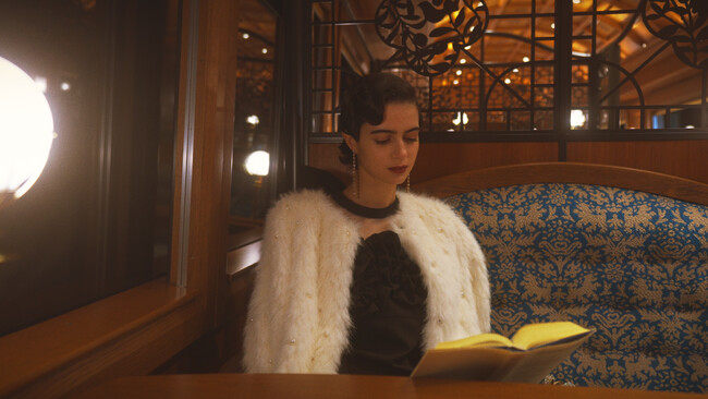 華やかなドレスの表情が車内の光と調和し、エレガンス溢れるシーンの連続が、冬の物語に彩りを添えます。