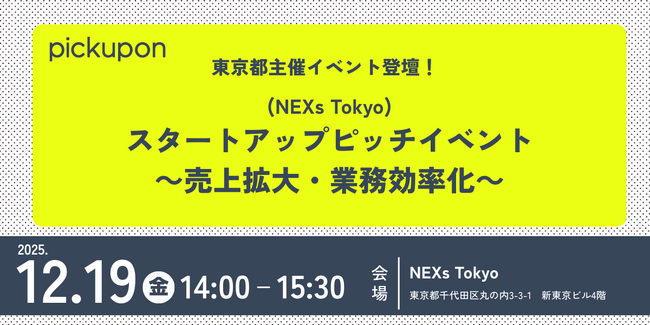 【12月19日(金)開催】東京都主催「NEXs Tokyo スタートアップピッチイベント~売上拡大・業務効率化~」にpickupon株式会社の登壇決定!