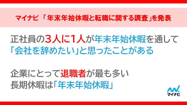 マイナビ 「年末年始休暇と転職に関する調査」を発表