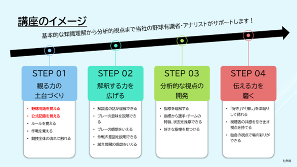 - STEP1:観る力の土台づくり(野球用語、公式記録、ルールなどの確認)