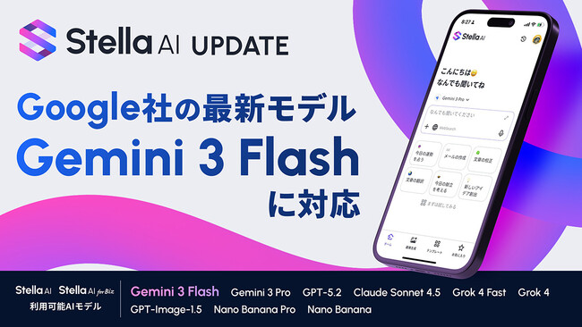 生成AIサービス「Stella AI」および「Stella AI for Biz」が、Google社の最新生成AIモデル「Gemini 3 Flash」に即日対応