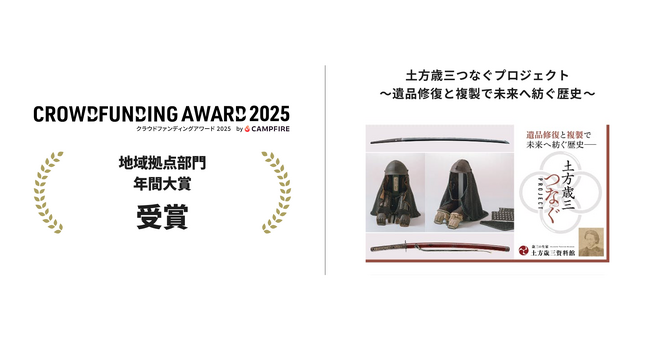 【土方歳三つなぐプロジェクト ~遺品修復と複製で未来へ紡ぐ歴史️~】がCAMPFIREクラウドファンディングアワード2025【年間大賞・地域拠点部門】を受賞!