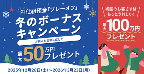 ※ 2025年12月20日(土)よりも前に円仕組預金に「プレーオフ」お預入れしたことがないお客さまが対象となります。