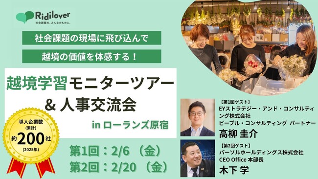 株式会社Ridilover(東京都文京区、代表取締役:安部敏樹)は、株式会社ローランズと共同で、企業の人事担当者に特化したモニターツアーイベントを開催いたします。