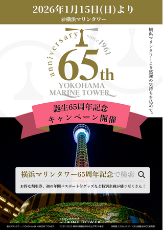 総合不動産企業リスト株式会社(本社:横浜市、代表:北見尚之)グループのリストプロパティーズ株式会社(本社:横浜市、代表:北見尚之)を中心とした共同事業体が運営を行う「横浜マリンタワー」は、2026年1月15日(木)で65周年を迎えます。日頃のご愛顧への御礼として、皆さまにお楽しみいただける特別企画を実施いたします。これからも地域に愛されるシンボルとして、皆さまとともに歩み、新たな魅力を育み続ける場所を目指してまいります。そして、新しい横浜の魅力をこの場所から発信し続けてまいります。