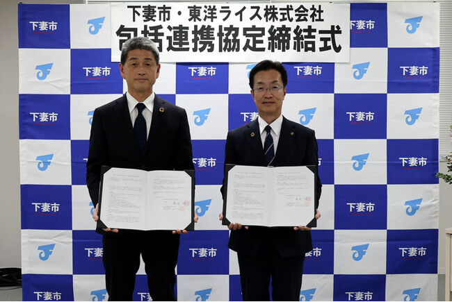 この度、茨城県下妻市(市長:菊池博、以下「下妻市」)と東洋ライス株式会社(代表取締役社長:雜賀慶二、和歌山本社:和歌山市、以下「東洋ライス」)は、下妻市産米を活用した健康増進、食育の推進や、農業振興を通じて地域活性化を目的とした包括連携協定を令和7年12月18日付で締結しました。