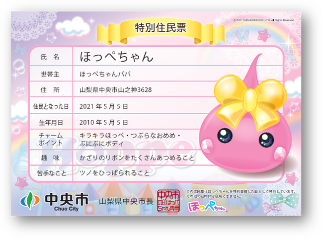 中央市に住民票をもつほっぺちゃん
