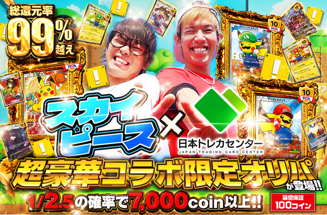 日本最大級のオンラインオリパ販売サービス「日本トレカセンター」は、大人気YouTuber兼アーティスト・スカイピース(テオくん・☆イニ☆)のお二人とのコラボレーションオリジナルパック(オリパ)を、スカイピースのメインチャンネルでの動画公開と合わせて2025年12月19日(金)20:00より販売開始いたします。