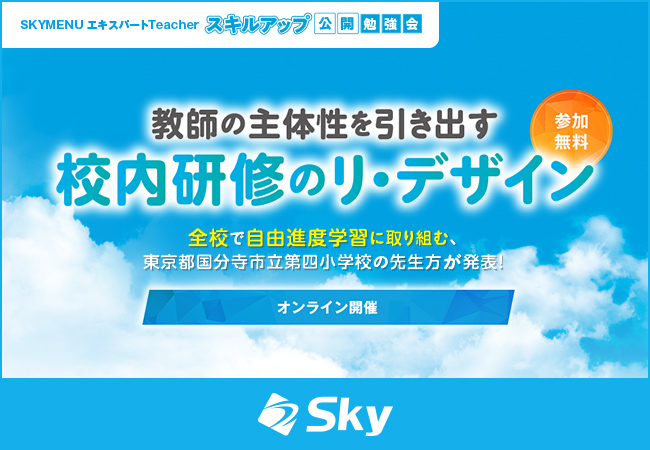 SKYMENU エキスパートTeacher スキルアップ公開勉強会「教師の主体性を引き出す校内研修のリ・デザイン」を1月10日にオンラインで開催