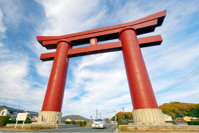 由加山のシンボルである備前焼の大鳥居は国の登録有形文化財に指定されており、その両側には備前焼で造られた子連れ獅子が鎮座しています。境内にはアート作品やパワースポットも点在。ゆっくりと散策を楽しむのもおすすめです。