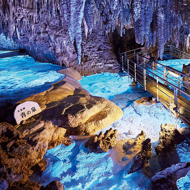 玉泉洞(ぎょくせんどう)約30万年の年月をかけて創られた玉泉洞は、全長5,000m、鍾乳石100万本以上を擁し、国内最大級の規模を誇ります。(一般公開は890m)