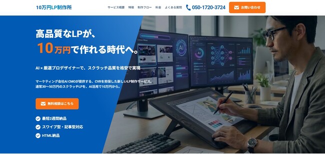 Ai CMO株式会社、「10万円LP制作所」を始動。AI×プロ人材の連携で、通常30~50万円の高品質LP制作を“10万円”で実現
