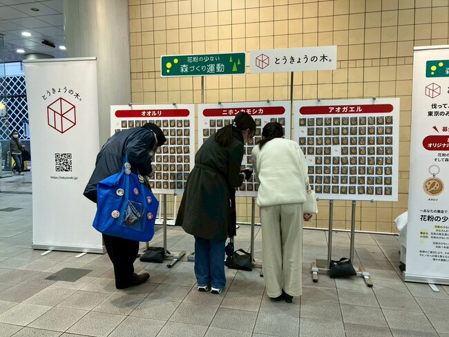 花粉の少ない森づくり運動が、12月14日・15日に渋谷マークシティイベントスクエアで行われ、Z世代の若者と共創・製作した とうきょうの木(R) のチャームが、募金された方へプレゼントされました。