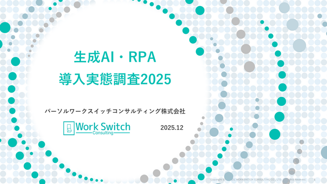 「はたらいて、笑おう。」をビジョンに掲げるパーソルグループのパーソルワークスイッチコンサルティング株式会社(本社:東京都千代田区、代表取締役社長:小野 隆正、以下「パーソルワークスイッチコンサルティング」)は、日本企業におけるAIおよびRPAの活用実態と課題を明らかにするために、「生成AI・RPA導入実態調査2025」を実施しました。