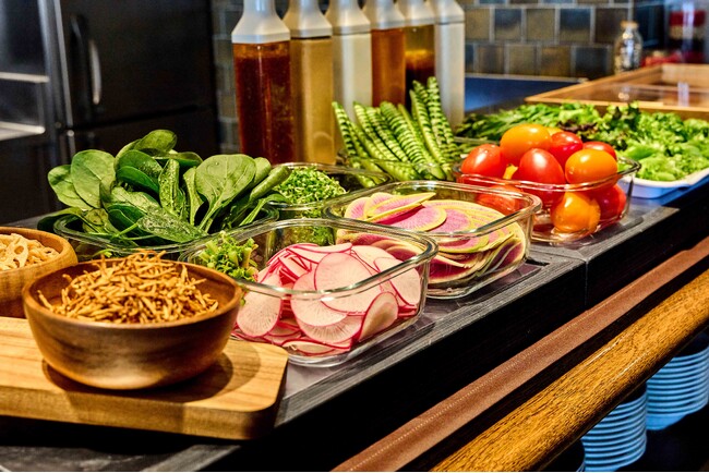 ブッフェコーナーには、神奈川県産の野菜を中心とした前菜が並びます。横浜市産の水菜やサラダほうれん草、トマトを使ったサラダをはじめ、三浦市産ビーツのバルサミコ風味、冬瓜のブイヨン煮込み、川崎市・森正養鶏場の卵を使った温度卵など、日替わりでお楽しみいただけます。