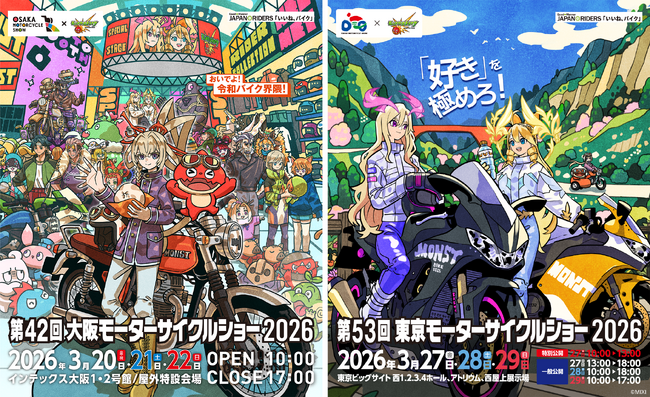 株式会社MIXI(東京都渋谷区、代表取締役社長 上級執行役員 CEO:木村 弘毅)は、スマホアプリのひっぱりハンティングRPG「モンスターストライク」(以下モンスト)において、一般社団法人 日本二輪車普及安全協会(会長:倉石誠司)が主催する「第42回大阪モーターサイクルショー2026」および「第53回東京モーターサイクルショー2026」とコラボレーションを実施することをお知らせします。