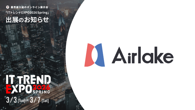 株式会社DATAFLUCT(本社所在地:東京都渋谷区、代表取締役CEO:久米村 隼人、以下DATAFLUCT)は、データ分析・AIエージェント構築をトータル支援する「Airlake」を、株式会社Innovation & Co.(本社:東京都渋谷区、代表取締役社長:幸哲史、以下「Innovation & Co.」)が主催する業界最大級のオンライン展示会「ITトレンドEXPO2026 Spring」に出展します。