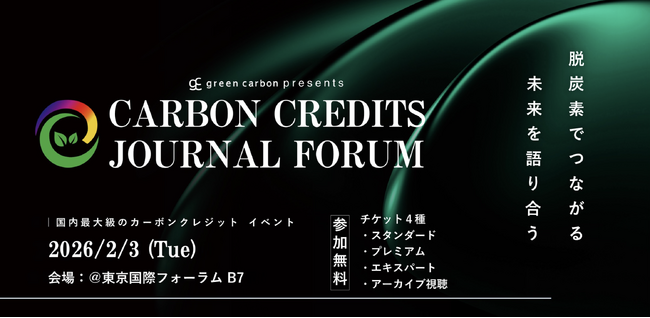 ネイチャーベースのカーボンクレジット創出・販売事業を展開するGreen Carbon株式会社(代表取締役:大北潤、以下Green Carbon(グリーンカーボン))はこの度、国内最大級のカーボンクレジット特化フォーラム「Carbon Credits Journal Forum(以下、本Forum)」を、2026年2月3日(火)に東京国際フォーラムB7(有楽町駅直結)にて開催することをお知らせします。