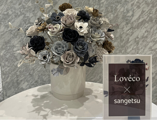 このアートフラワーは「Lovēco × sangetsu」として、サンゲツ品川ショールームで展示しています。