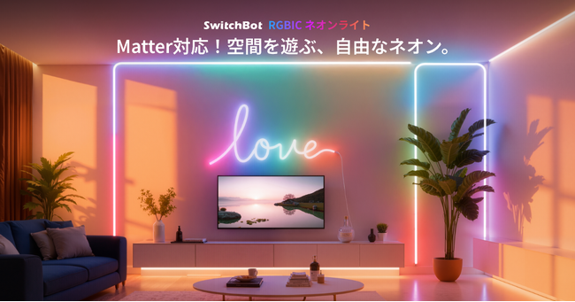 IoT・スマートホーム事業を展開する「IoTデバイスNo.1ブランド(※2022年11月 家電Biz調べ)」のSWITCHBOT株式会社(本社:東京都渋谷区)は、自由自在に曲げて形を作れるインテリア照明「RGBICネオンライト」の予約販売を2025年12月25日(木)よりAmazon公式ストア、SwitchBot公式サイト、ヤフーSWITCHBOT公式ショップで開始いたします。本製品は、Matterに対応し、Appleのホームアプリをはじめとする多様なプラットフォームでの操作が可能。RGBIC技術が実現する滑らかなグラデーション効果、ネオンライトの鮮やかで均一な光と、自由に曲げられる造形力で、あなたの部屋を「光のアート空間」へと変貌させます。