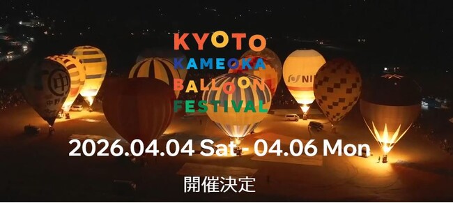 京都府亀岡市(市長:桂川 孝裕)は、亀岡市が参画している京都・亀岡バルーンフェスティバル実行委員会(実行委員長:奥村 昌信:事務局 亀岡市生涯スポーツ課内)として、2026年4月4日(土)から6日(月)までの3日間、「京都・亀岡 バルーンフェスティバル2026」を開催することを報告いたします。本フェスティバルは、開催時期を2月から4月へ変更した結果、気象条件が安定し、多くの競技飛行を完遂できたことから、来春も同時期での開催を決定しました。前年開催時、各日500名の体験搭乗枠がわずか1週間で完売するなど、早朝にも関わらず大勢の人で賑わったことから、さらなる魅力をお届けする予定です。