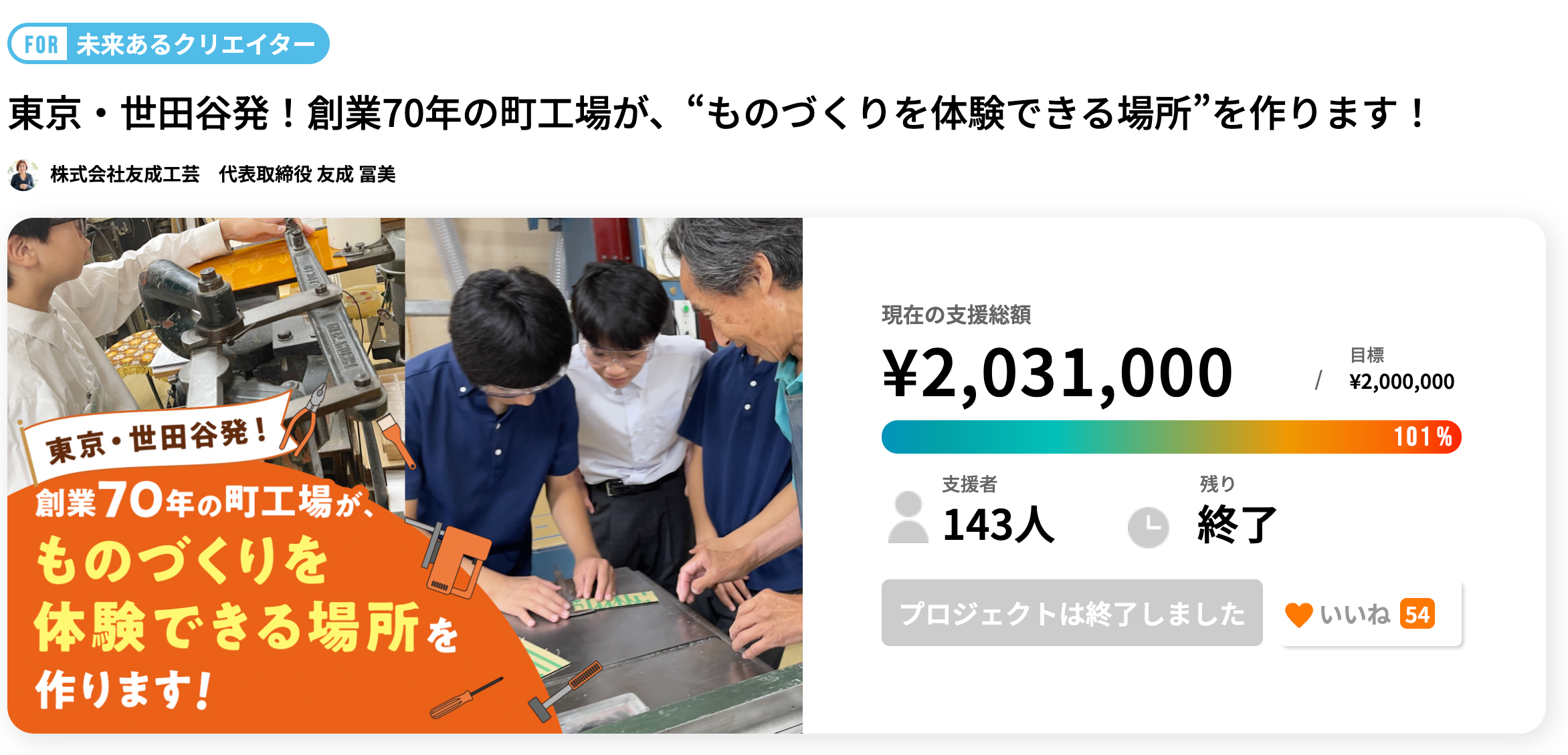 ■ クラウドファンディングで200万の目標達成!143名の支援により実現