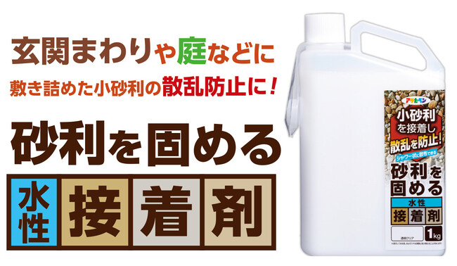 株式会社アサヒペン(本社:大阪市鶴見区、代表取締役社長:澤田耕吾)は、玄関まわりや庭、墓石周辺などに敷き詰められた小砂利の散乱を防止し、日々のお手入れをより快適にする「砂利を固める水性接着剤」を発売いたしました。