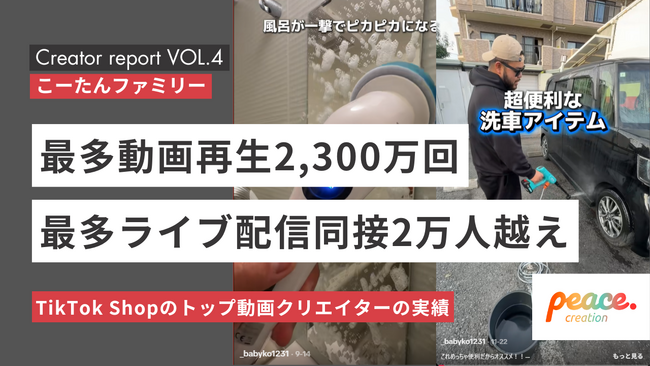Peace Creationは、引き続き「こーたんファミリー」さんのTikTok Shopを中心とした活動拡大に伴走するパートナーとして、継続的な体制でサポートしてまいります。